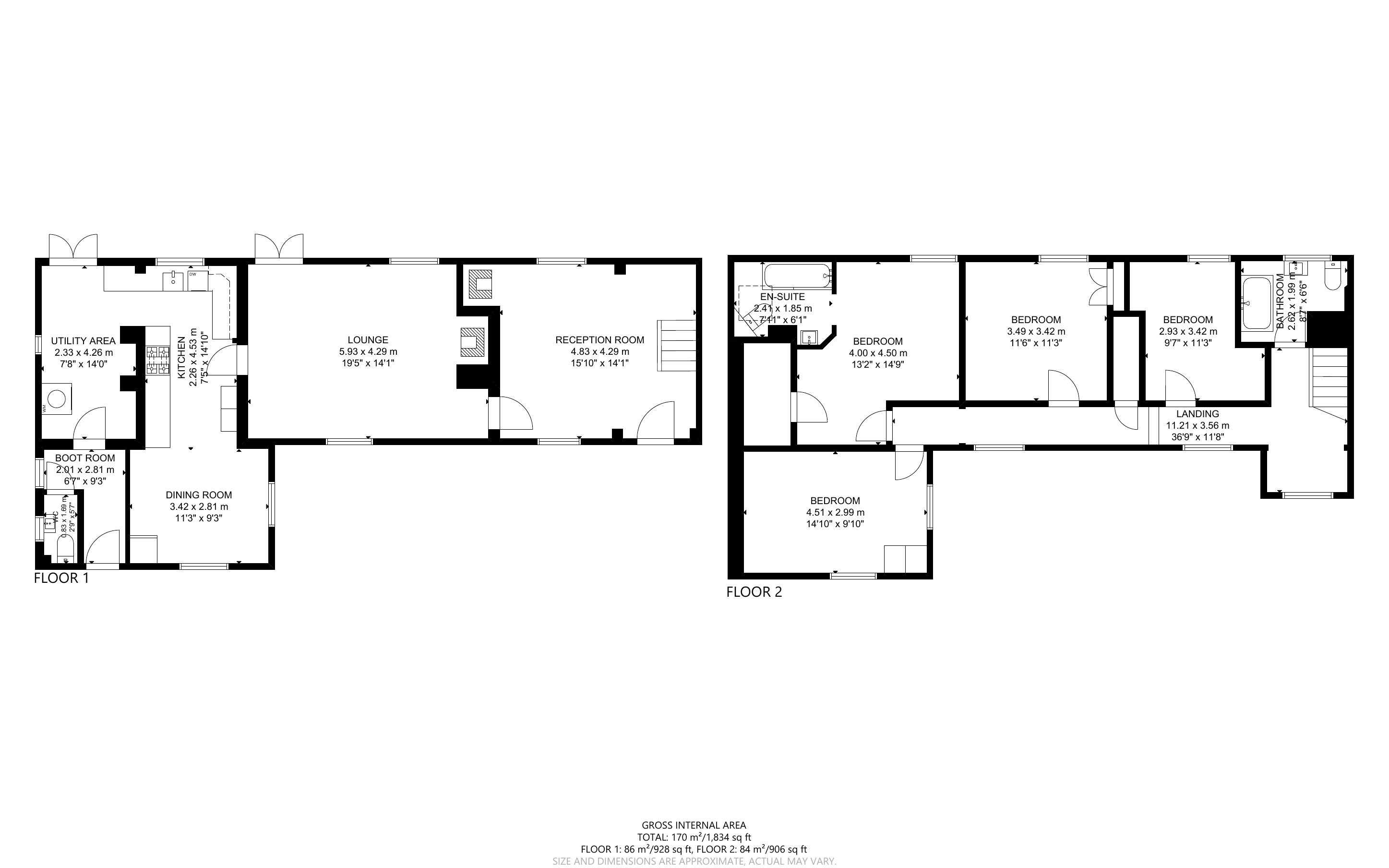 The accommodation also includes a kitchen / dining room, a utility room, a boot room, a cloakroom, a landing and four bedrooms, with the main bedroom one also enjoying a luxury ensuite bathroom / shower room.