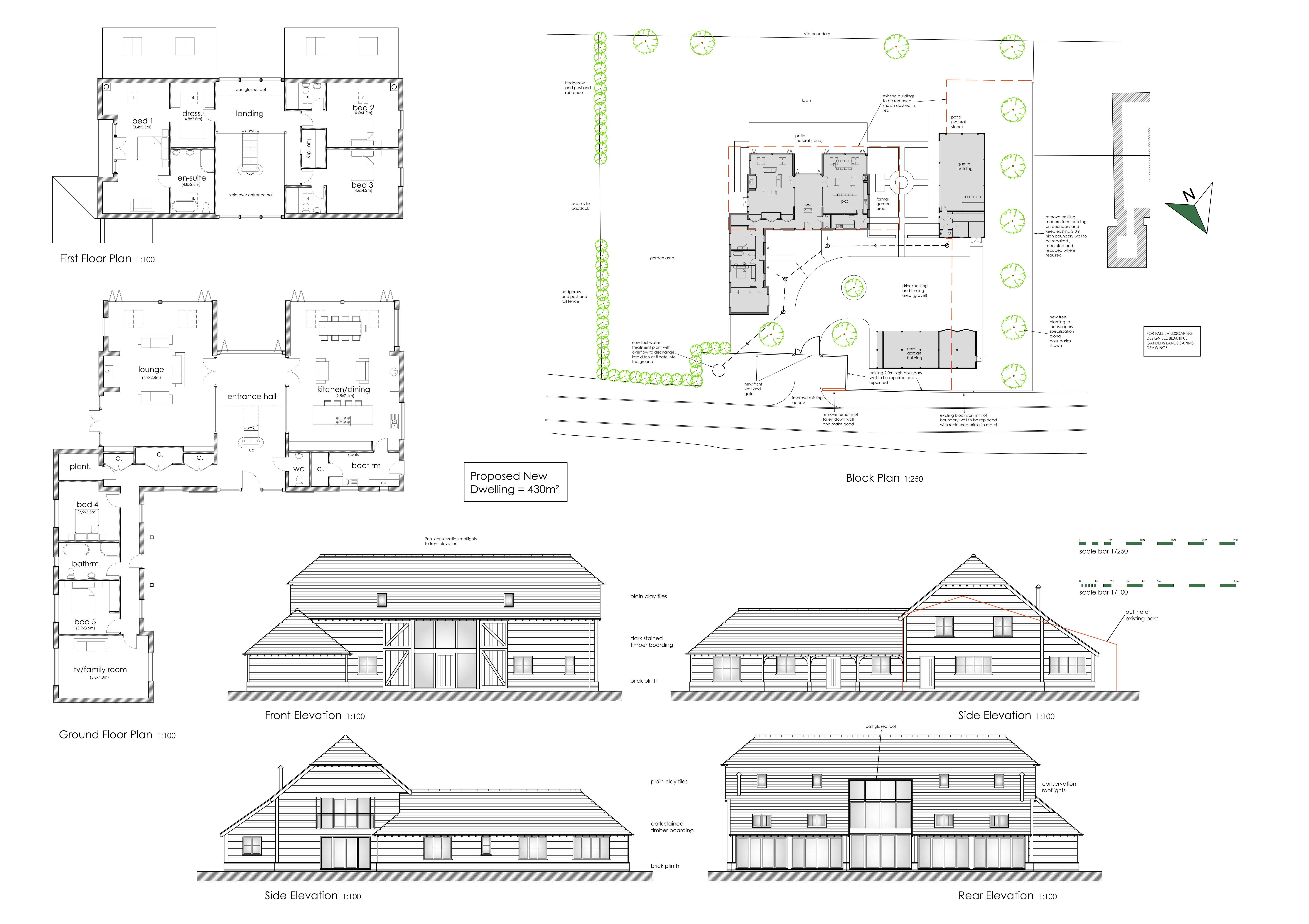 • The building plot design for the planning permission specifically for the main house accommodation totals 4,628 square feet (430 square meters)