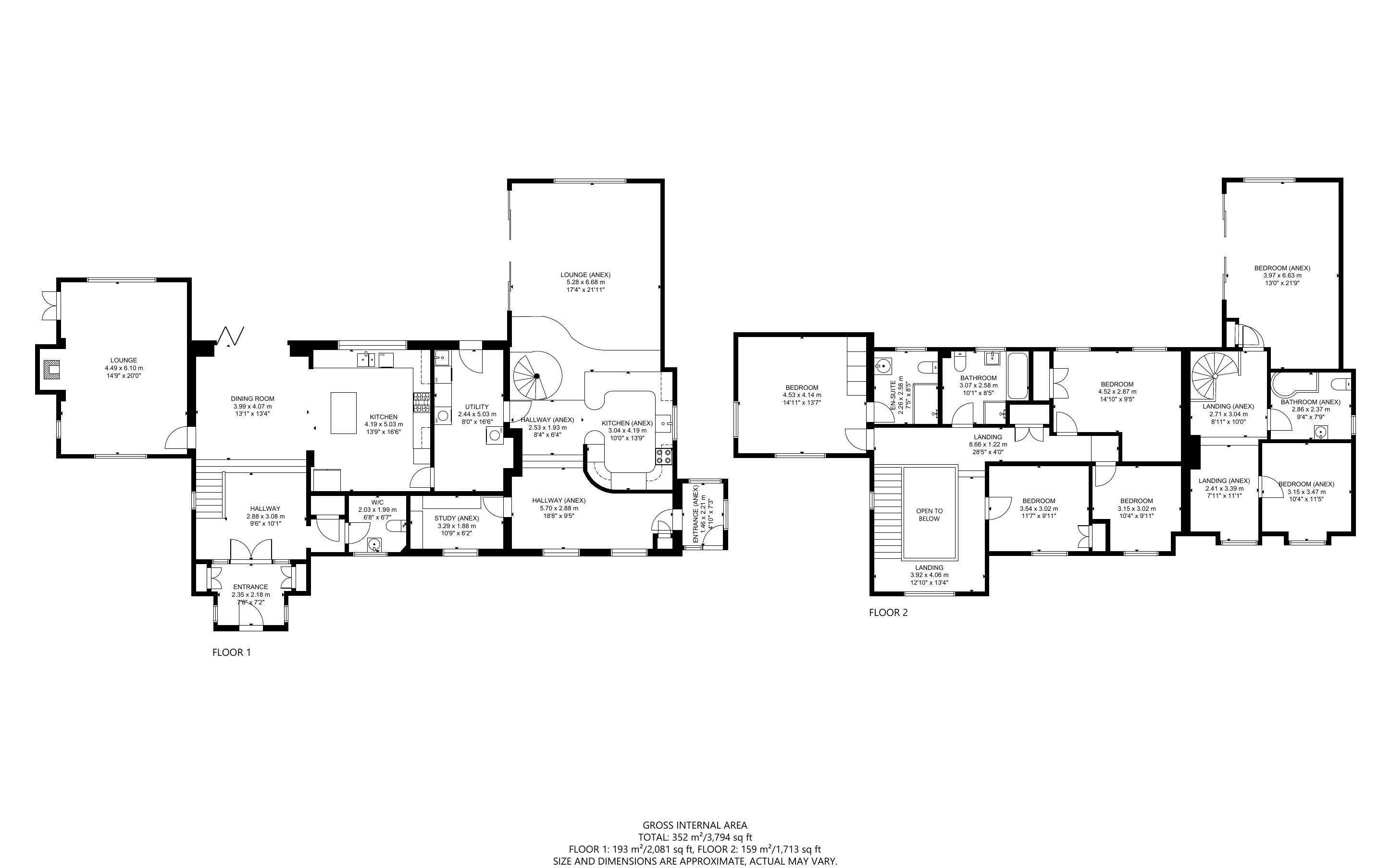 PLEASE NOTE: THE PRESENTLY INTERNAL SIDE TWO STOREY ANCILLARY ACCOMODATION COULD QUITE EASILY BE RE INCORPORATED INTO THE MAIN HOUSE ACCOMMODATION, AS THERE IS ONLY A STUD WALL DIVIDE BETWEEN TO TWO ACCOMMODATION SECTIONS.