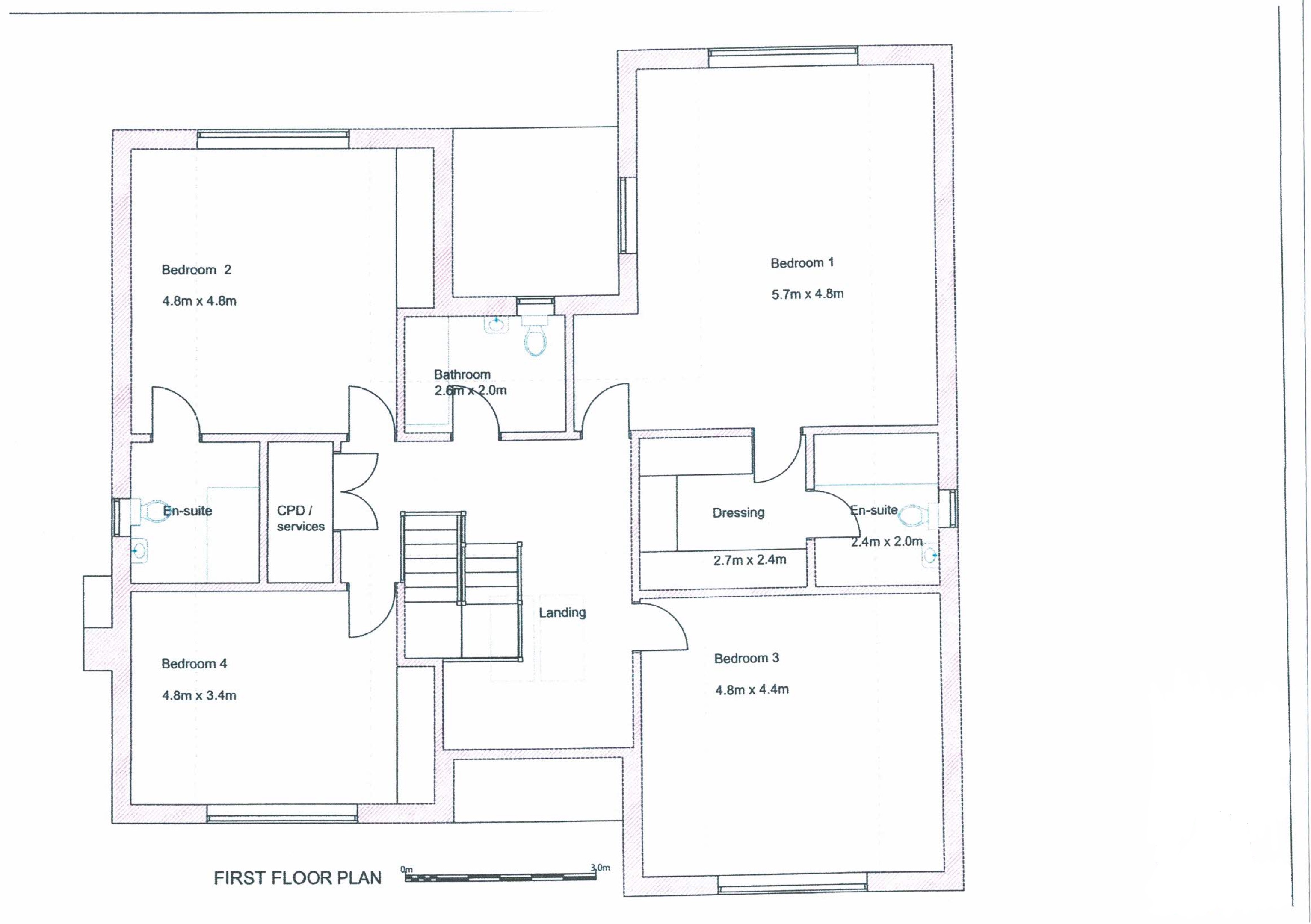On the first floor, the proposed accommodation is intended to comprise of 4 further double bedrooms, with sepereate en-suite shower rooms for both bedroom two and bedroom one, as well as a dressing room to accompany bedroom one. There is a large family bathroom for the remaining bedrooms. This all being combined together to provide a very spacious and generously proportioned internal area of 3,207 square feet overall.