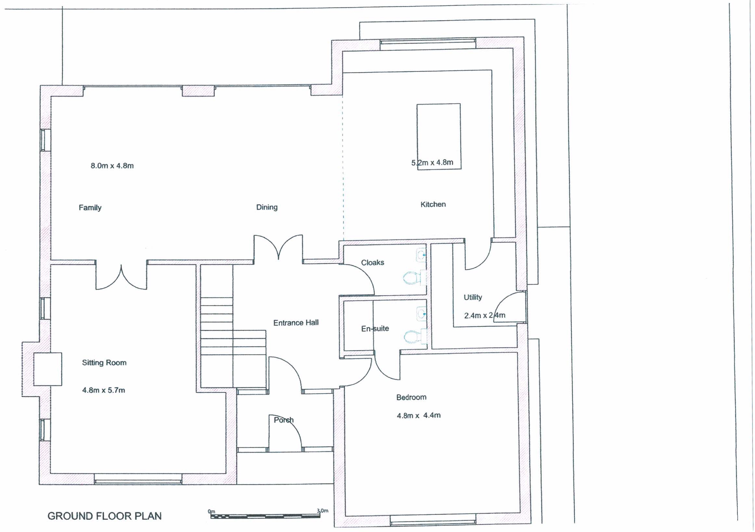 The proposed accommodation will comprise of a large reception hall after an intial enetrance vestibule, a cloakroom, a sitting room with a feature fireplace, a family room, an open plan dining room, a kirchen / breakfast room (also open plan), a utility room, ground floor bedroom five with an ensuite shower room all to the ground floor.