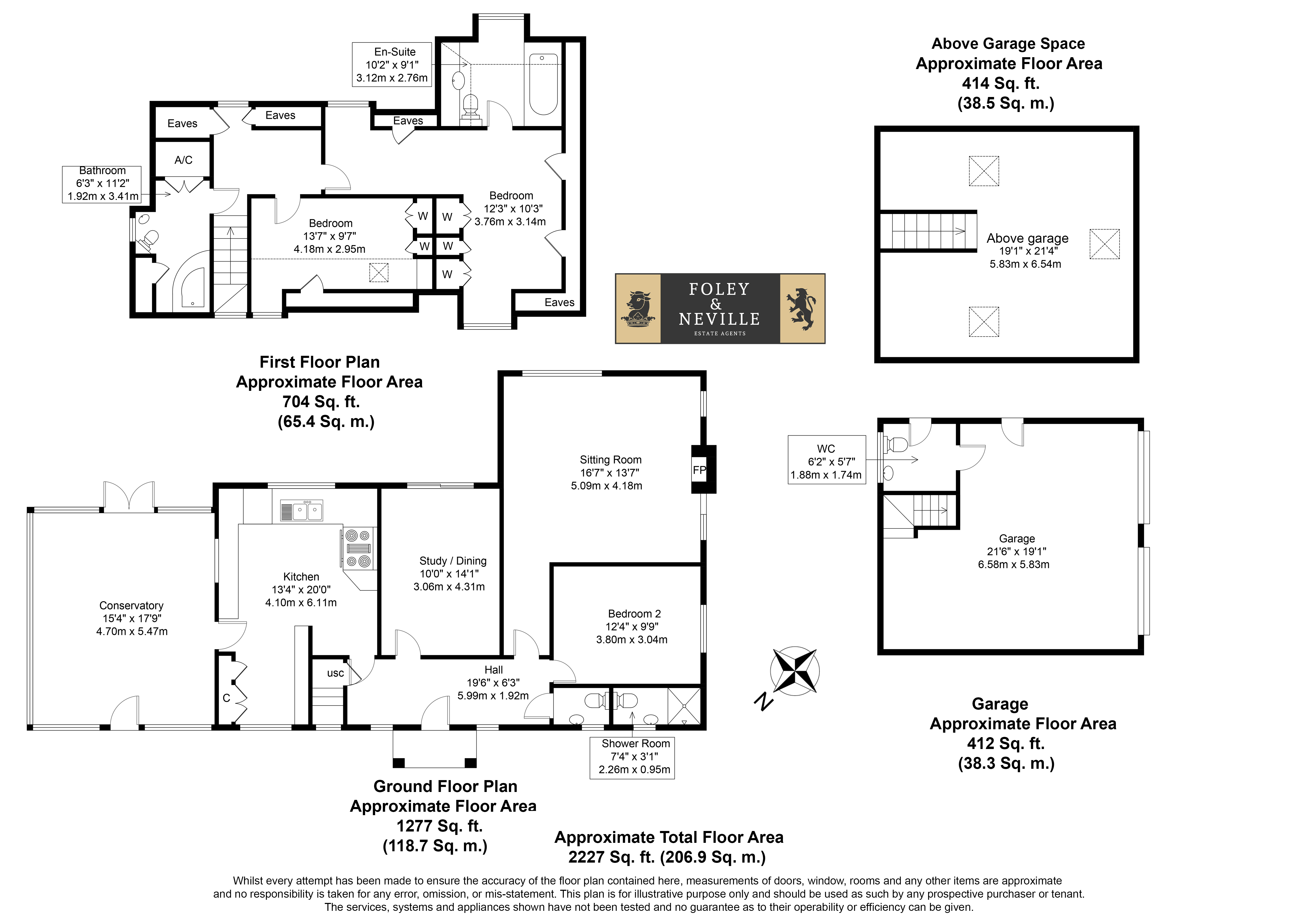 MAIN HOUSE ACCOMMODATION: RECEPTION HALL * KITCHEN / BREAKFAST ROOM * SITTING ROOM * CONSERVATORY * DOWNSTAIRS CLOAKROOM * DINING ROOM / STUDY * BEDROOM TWO WITH ENSUITE SHOWER ROOM * FIRST FLOOR LANDING WITH EAVES STORAGE * TWO FURTHER DOUBLE BEDROOMS * ENSUITE BATHROOM / SHOWER ROOM TO MAIN BEDROOM WITH VIEWS * SECOND BATHROOM * DOUBLE GLAZED WINDOWS * IN EXCESS OF 2000 SQUARE FEET * FURTHER DETACHED 826 SQUARE FOOT TWO STOREY GARAGE WITH CLOAKROOM POSSIBLY SUITABLE FOR CONVERSION SUBJECT TO PLANNING INTO AN ANNEX OR HOLIDAY LETTING UNIT.