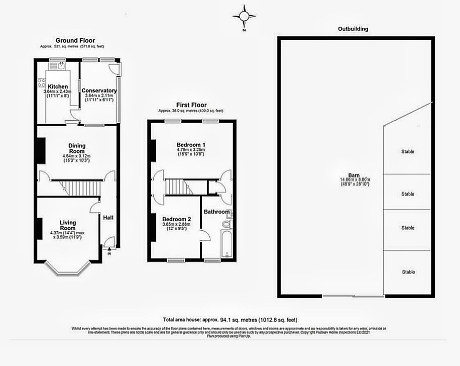 • Main house accommodation comprises of 2 bedrooms, bathroom, living room, dining room, kitchen, hall and landing.